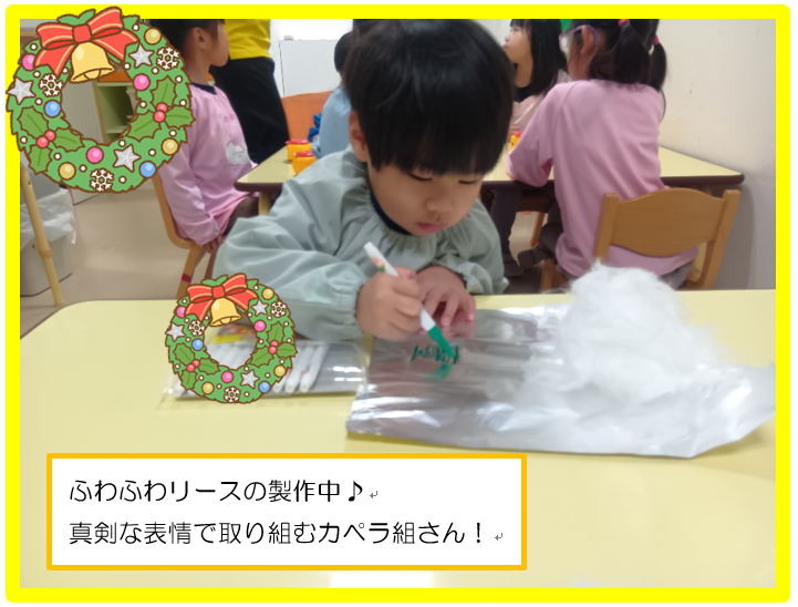 クリスマスの製作を行うことを伝えると「サンタさん来てくれるかな?」「早くクリスマスにならないかな~」と楽しみにしている子どもたちです💕