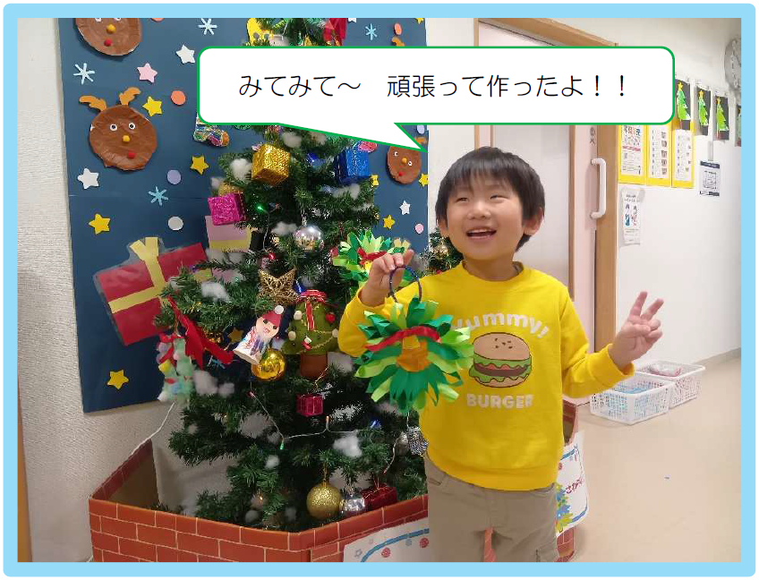 ツリーに飾る際にカメラを向けると嬉しそうに作品を見せてくれる姿も見られました👍