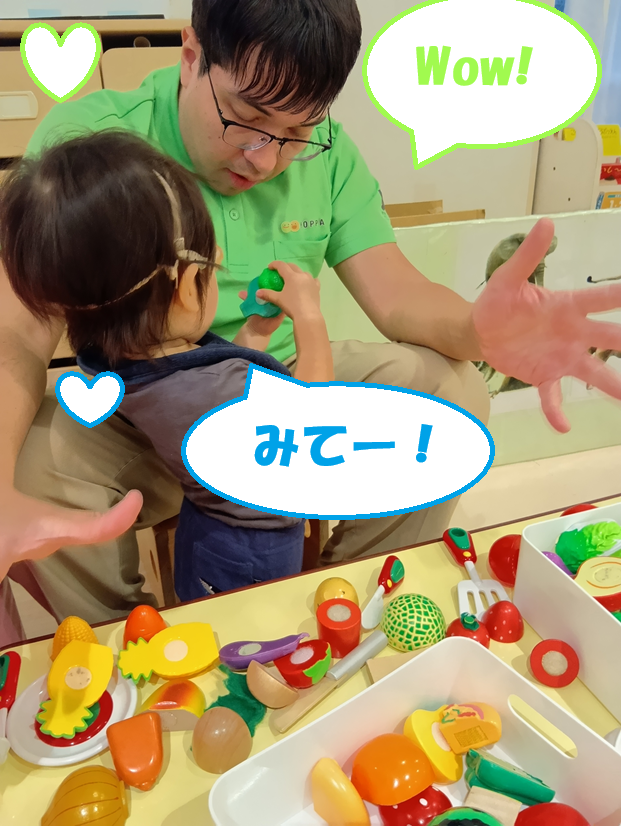 HOPPAの英語の取り組みの特徴の1つが、Englishの先生がEnglish time以外にも保育も一緒に行ってくれることです💡