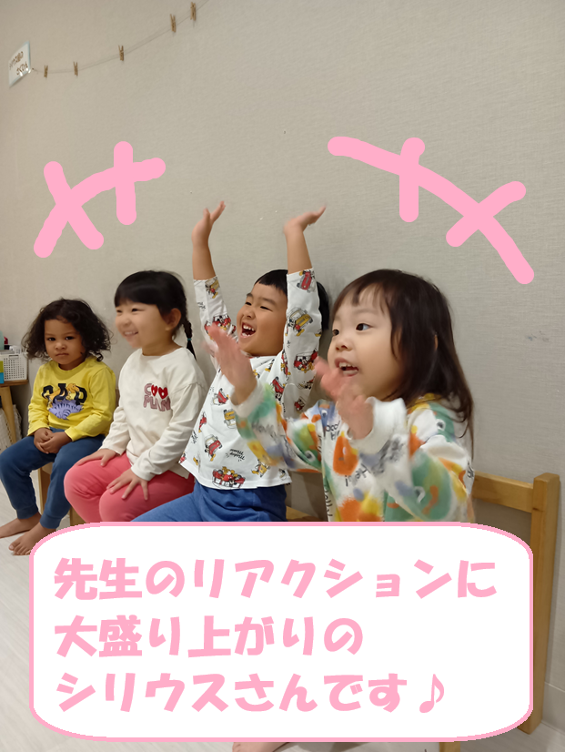 自己紹介を英語で言ったり、先生の発音を真似したりと、声に出して英語を楽しむ姿がみられます♪