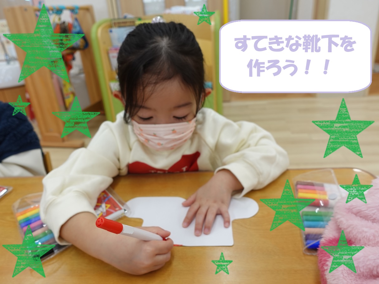 クリスマス製作では画用紙に好きな絵を描いてオリジナルの靴下を作りました✨