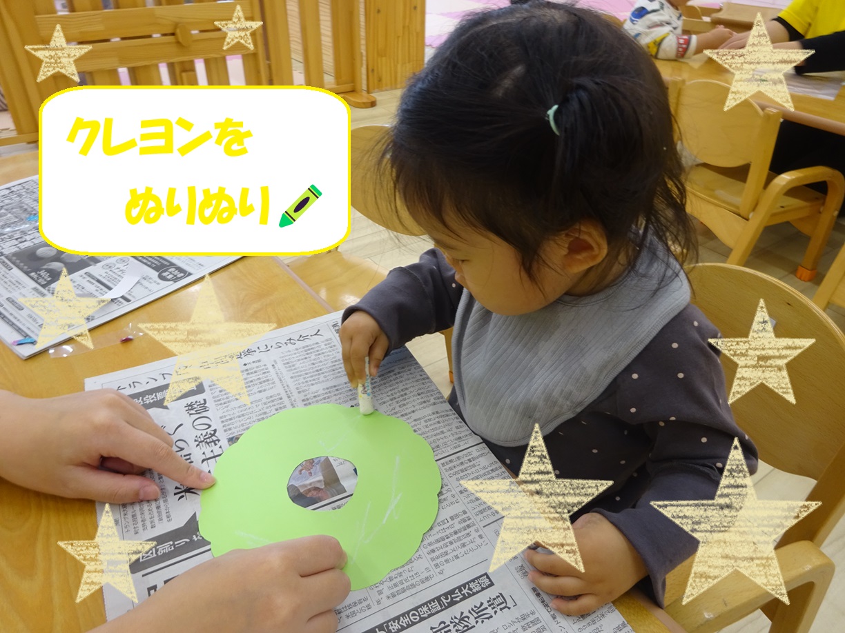 自分で作ったリースをツリーに飾ったことを伝えると、お迎えに来たときに見に行く姿も見られました😊