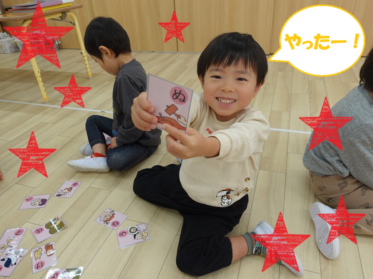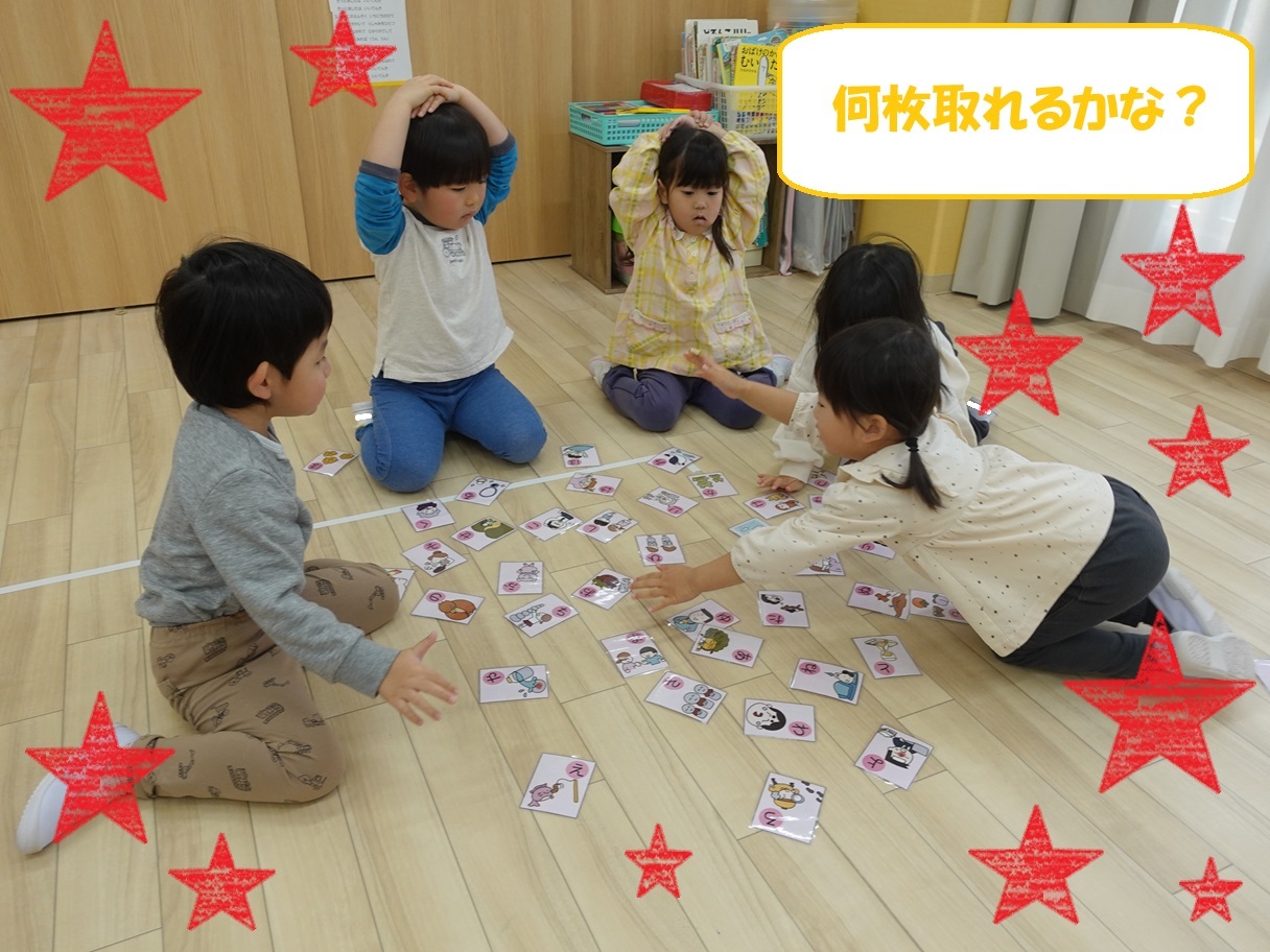 1枚カルタが取れるたびに大喜びで、みんな何枚とったかその都度枚数を数えて「○○枚とれた!!」と言いながら札を見せてくれます🎵