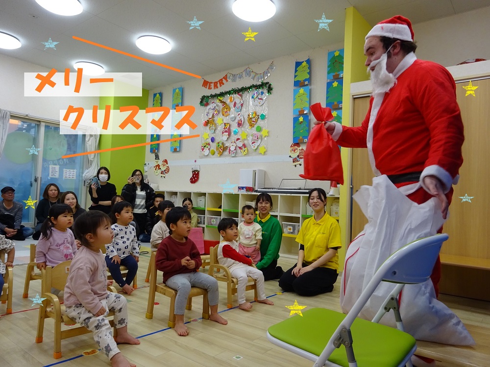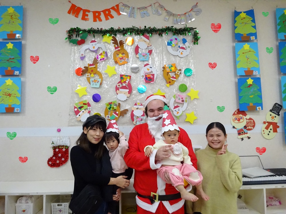 クリスマス会の最後には、みんなが作った製作を背景にサンタクロースと記念写真を撮りました!