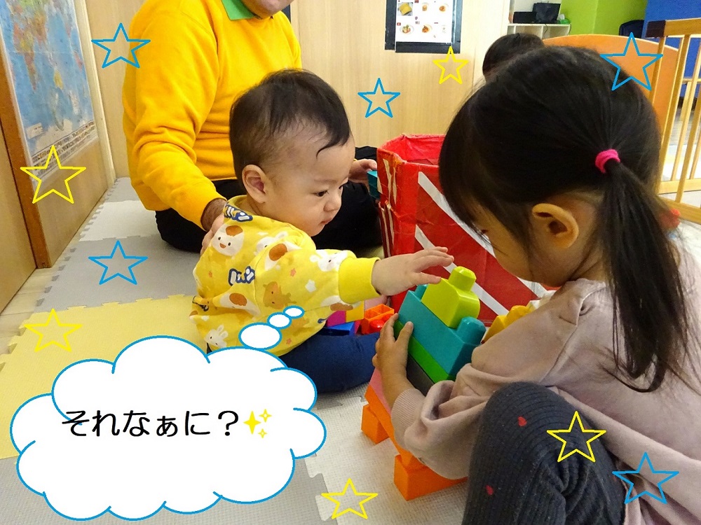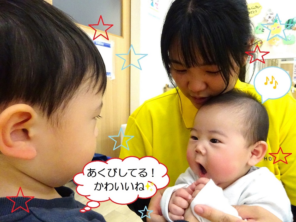 嬉しそうにお顔を覗き込んだり、自分のお気に入りの玩具を貸してあげたりと