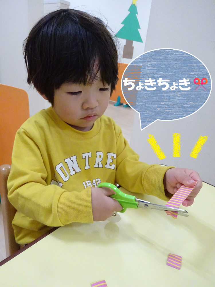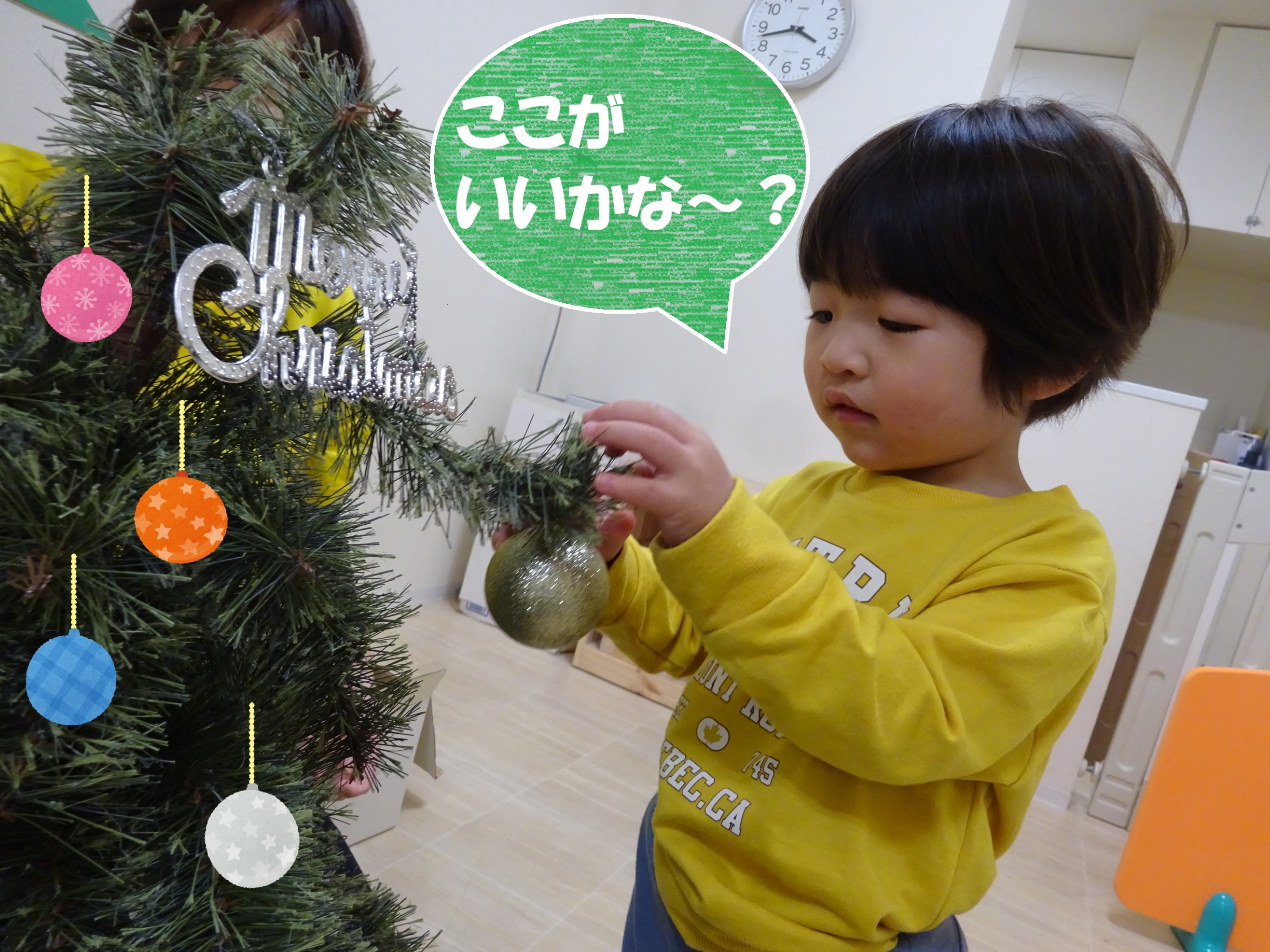 子どもたちは「どこに飾ろうかな?」と考えながら手を伸ばし、自分のペースで飾りつけを楽しんでいました🎵