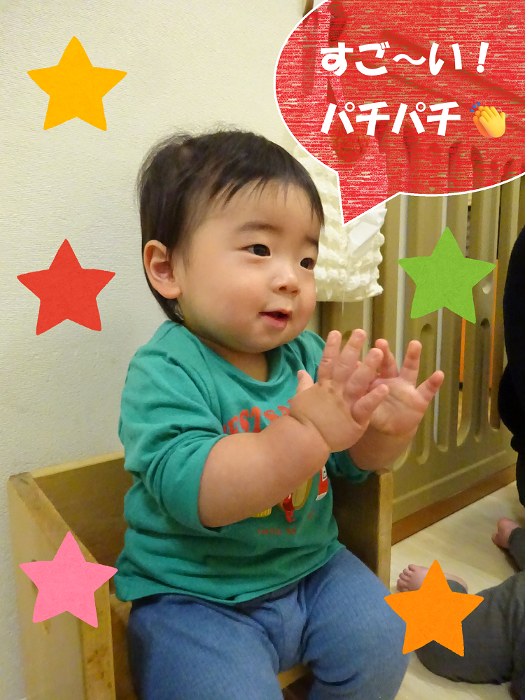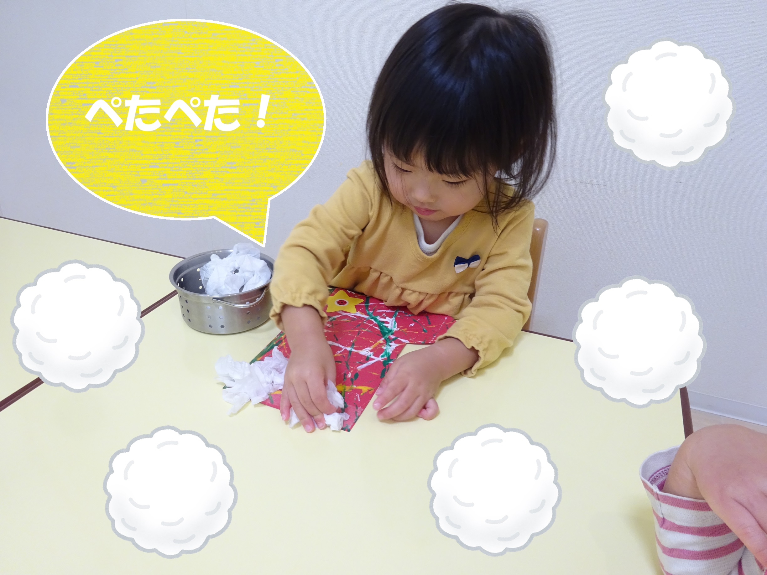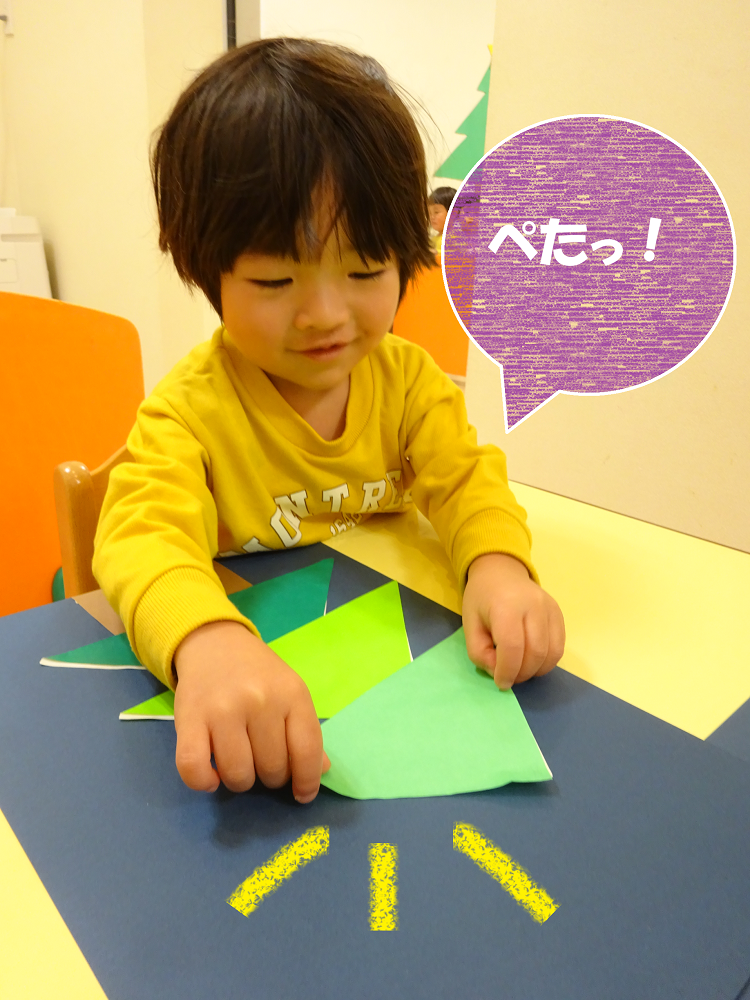 「ぺたっ」と貼れた瞬間の表情はとても愛らしく、見ている大人もほっこりする瞬間です💛