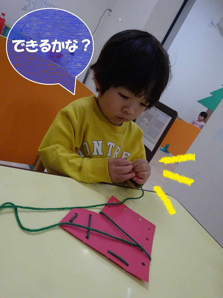 紐通しの途中では、「よいしょ!」と集中して取り組む様子が見られました🌟