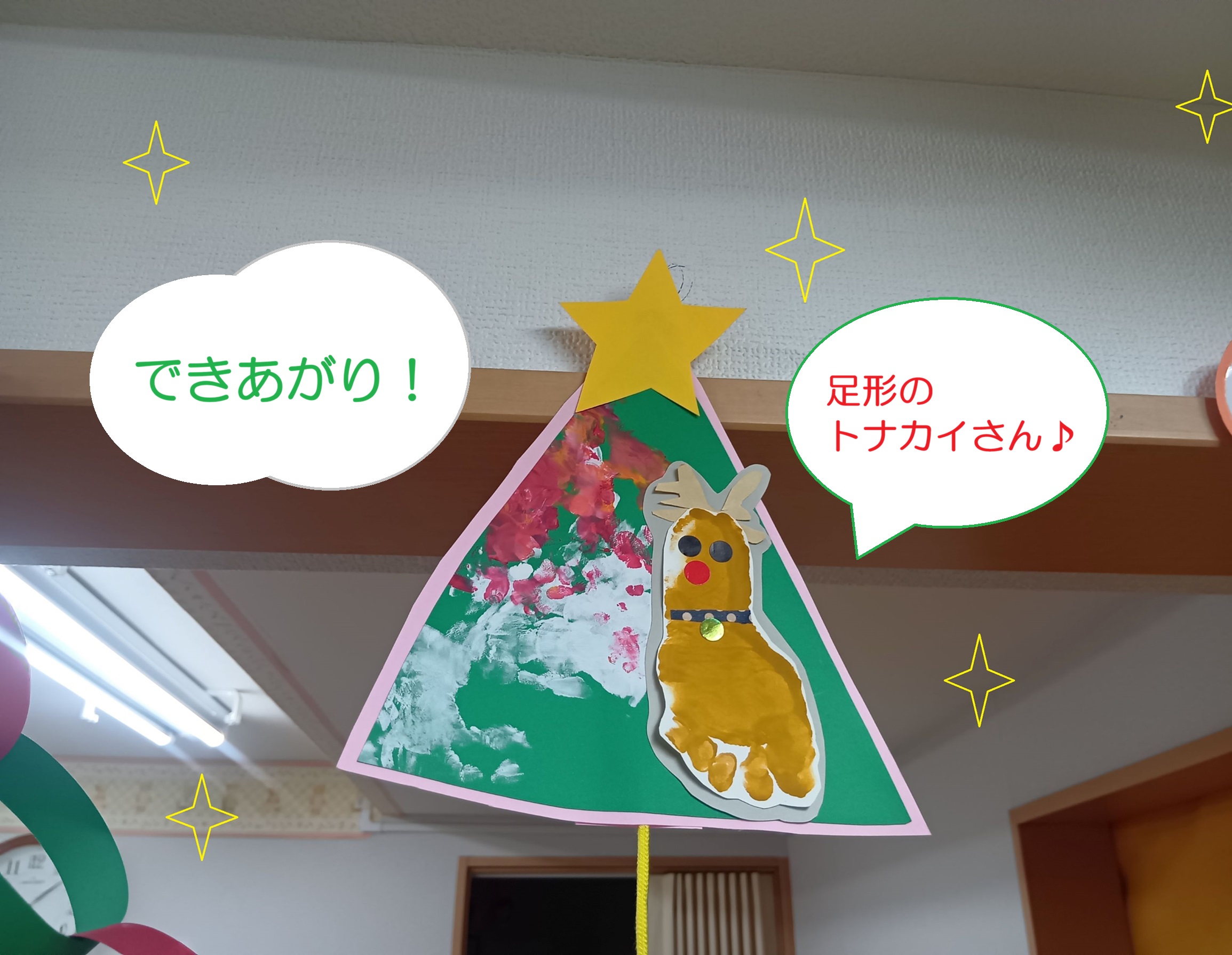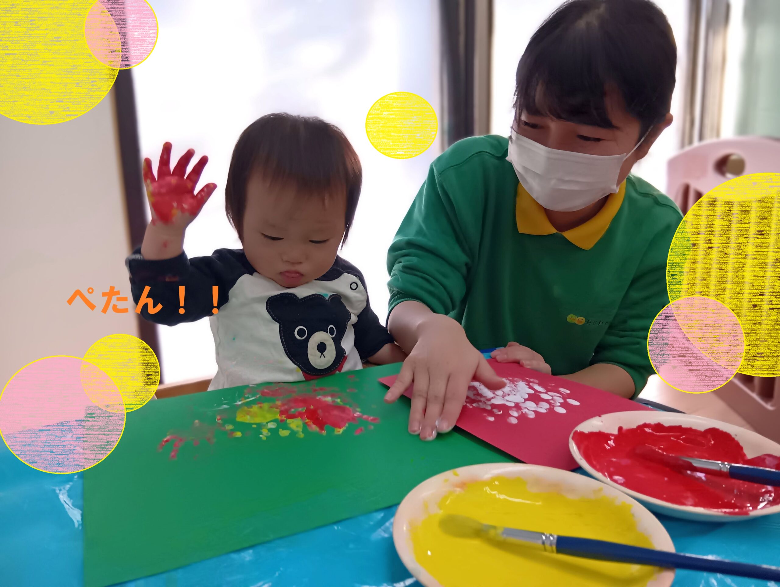 クリスマス製作で絵の具に触れた子どもたち!