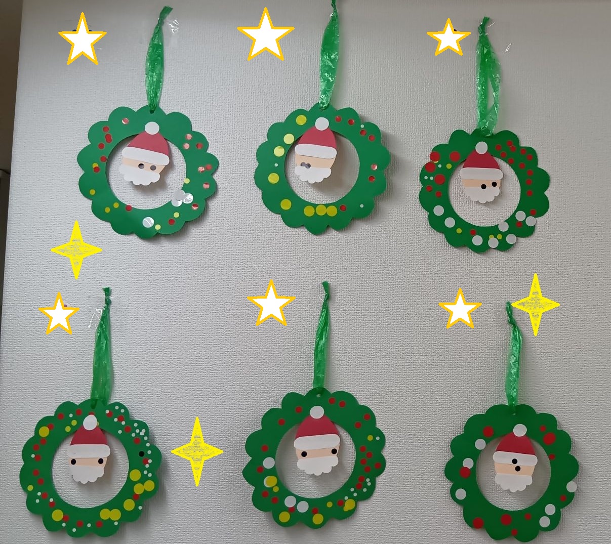サンタクロースの目の部分になっている小さなシールも、子どもたちが貼りました!