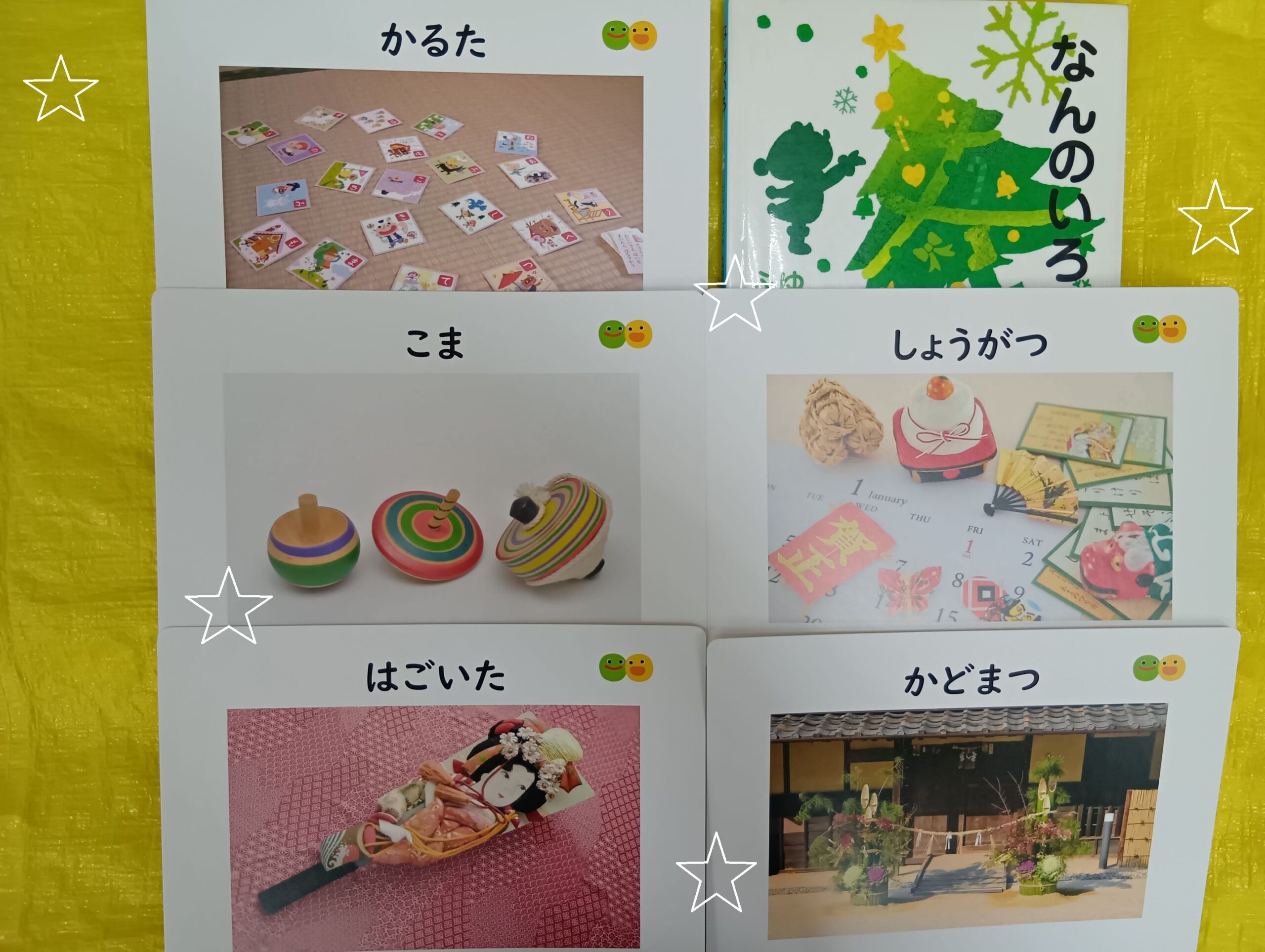 絵本の読み聞かせやお正月の歌、知育timeでの言葉カードを通してお正月に関する物事を知っていきます。