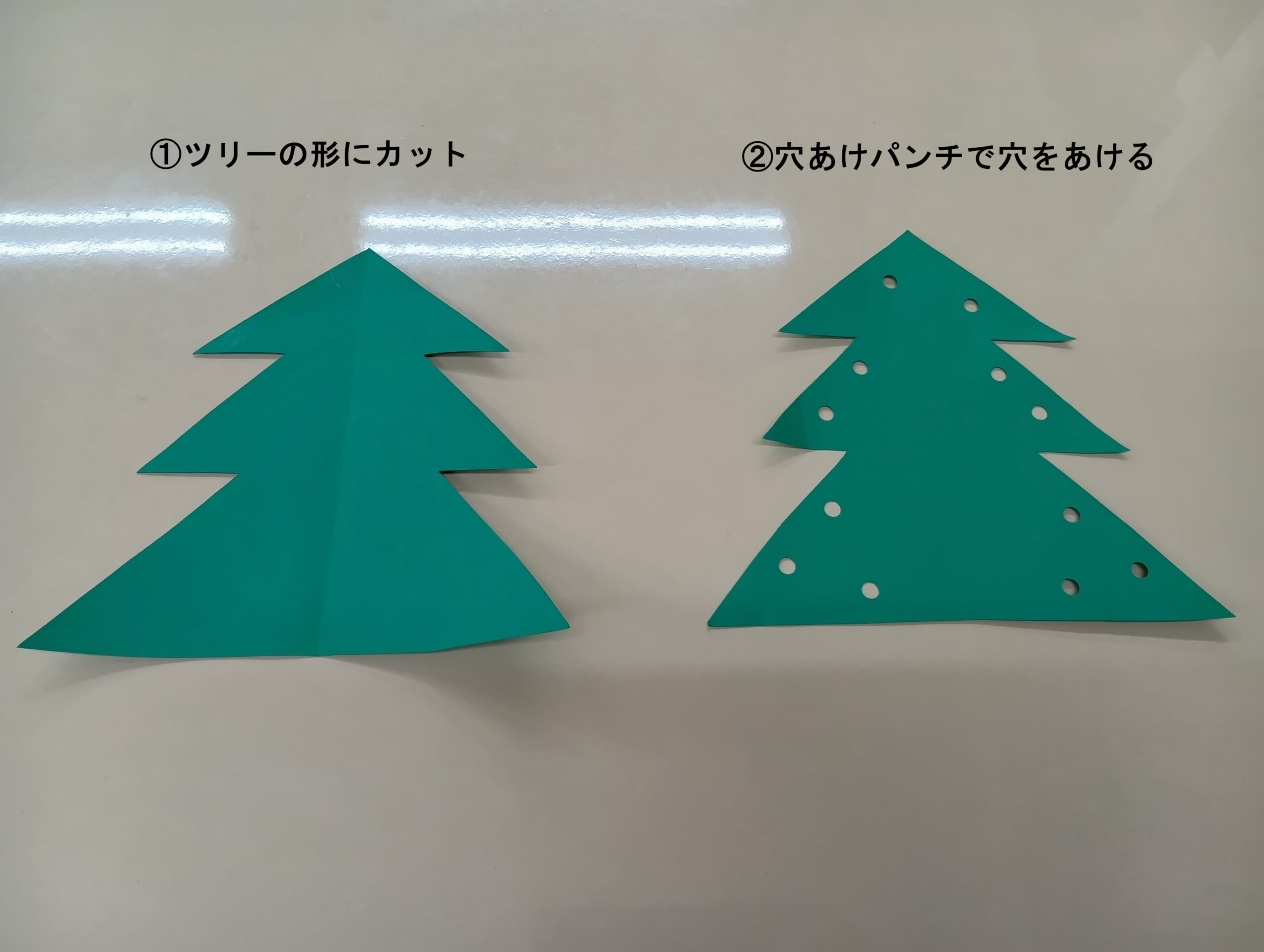➀ツリーの形に画用紙を切ります