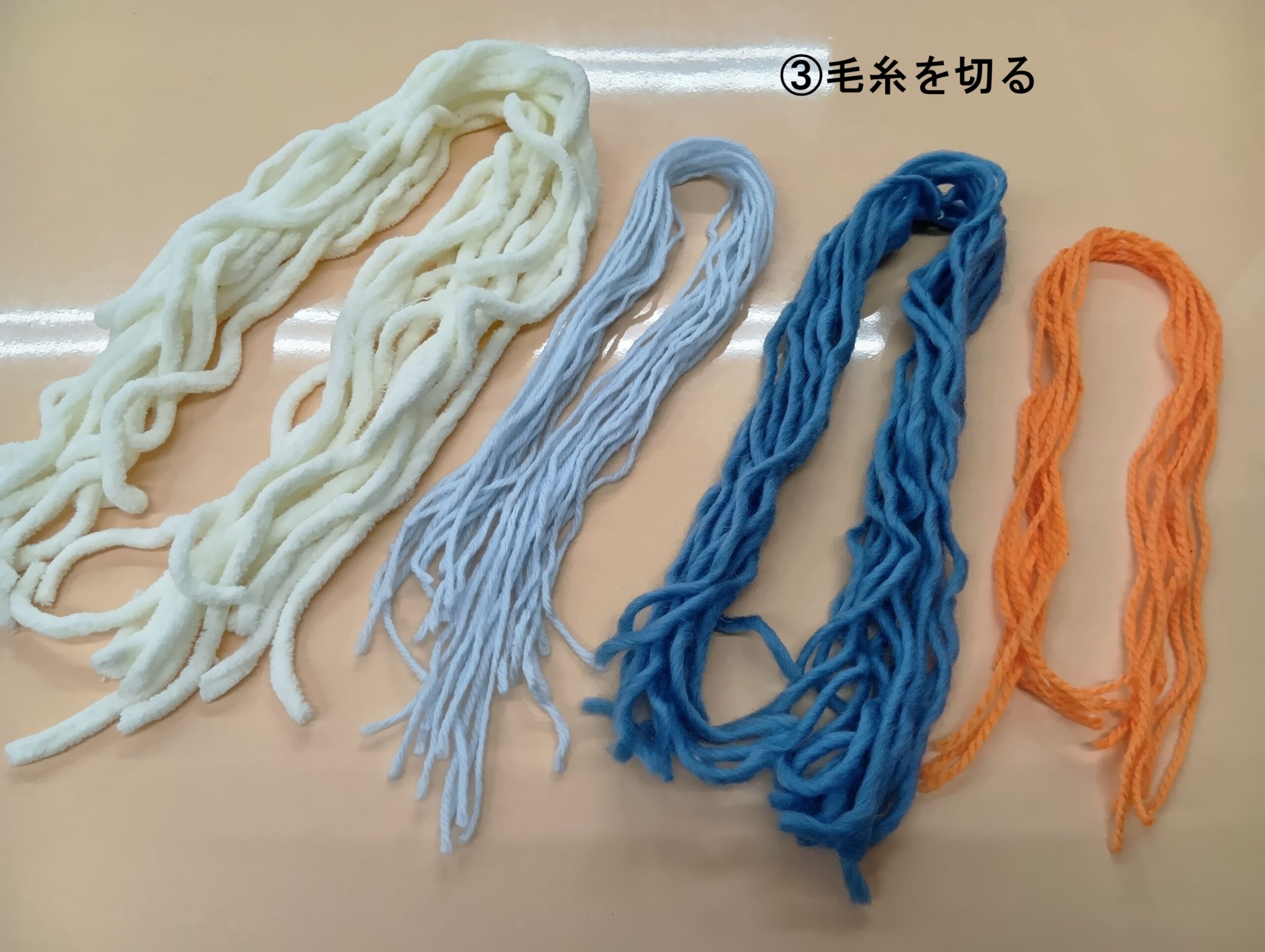 ➂毛糸をお好みの長さに切ります