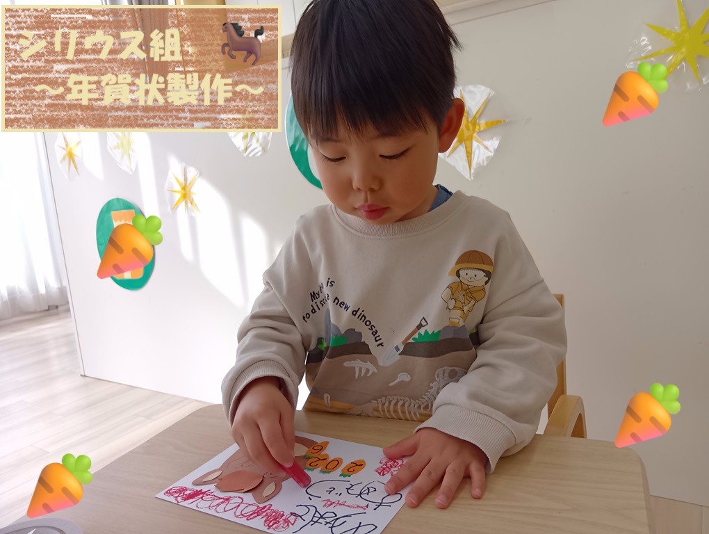 シリウス組(2歳児)は年賀状作りに挑戦🐎!