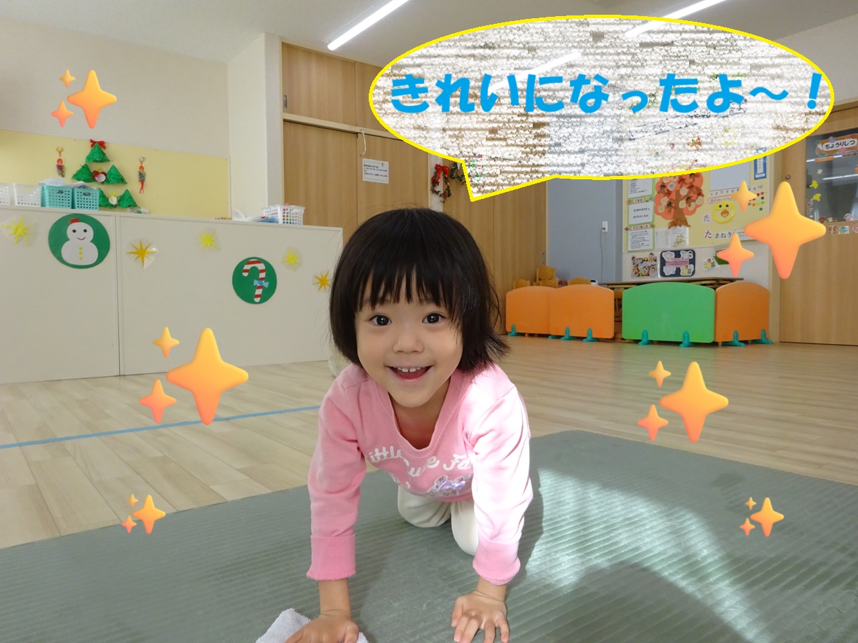 子どもたちと一緒にお部屋の隅々まで雑巾でていねいに拭きあげました。