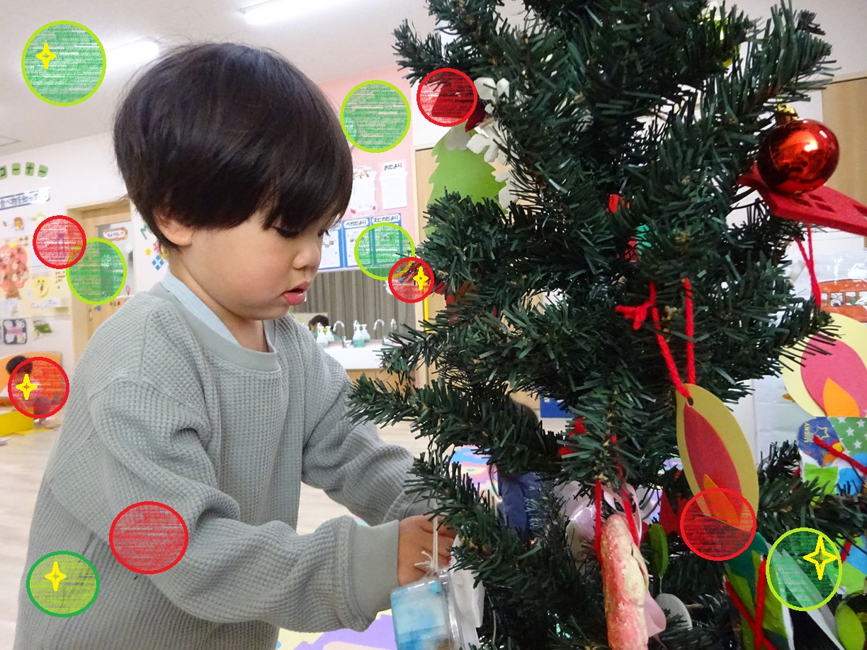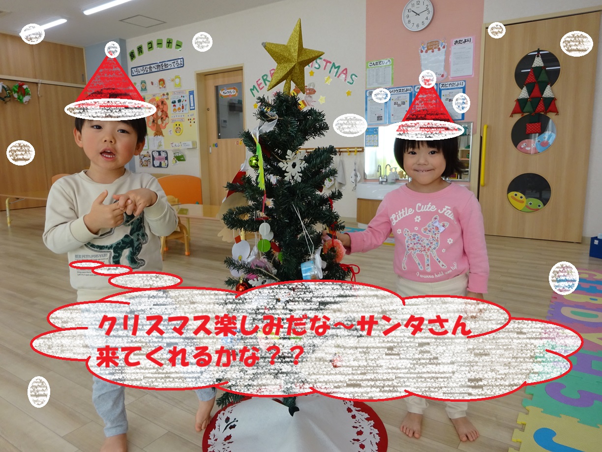 飾り付けをしたクリスマスツリーを見て「うわぁ、きれい!」と嬉しそうにしていましたよ。子どもたちもお部屋の装飾がクリスマスに変わると今か今かとサンタクロースを待ちわびている様子です🎅