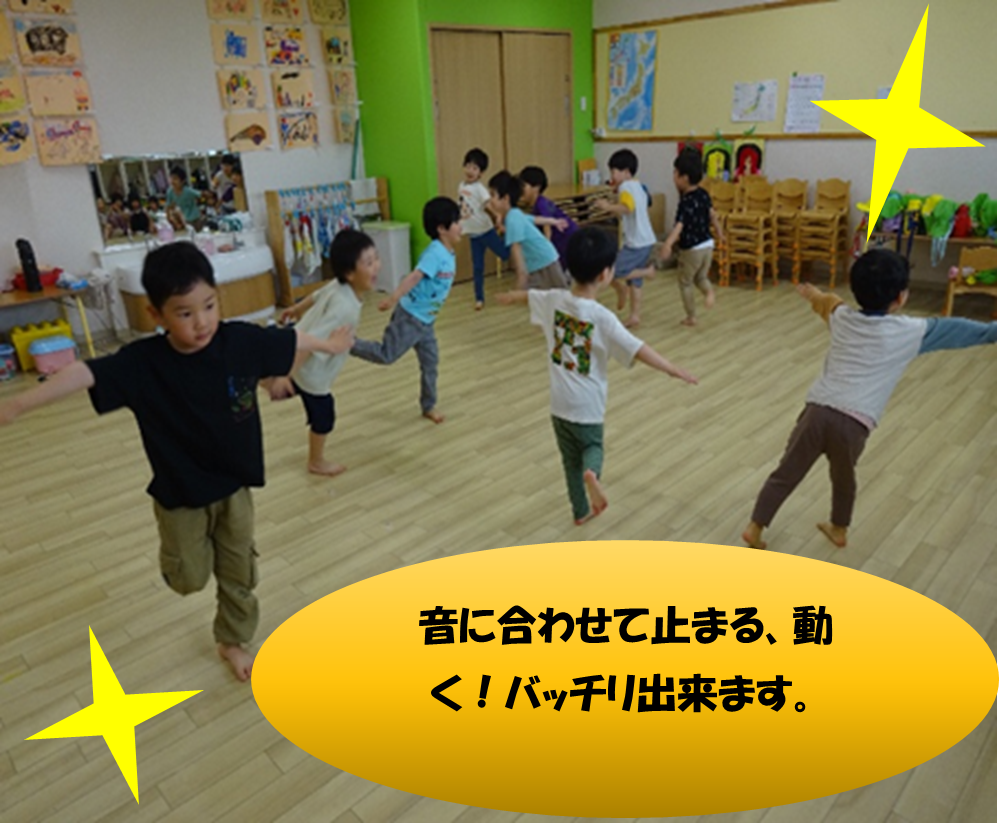 また、特定の曲を流すと自由に動きながら、リズムに乗って身体を動かしながら遊んでくださっているデネブ組さんです!