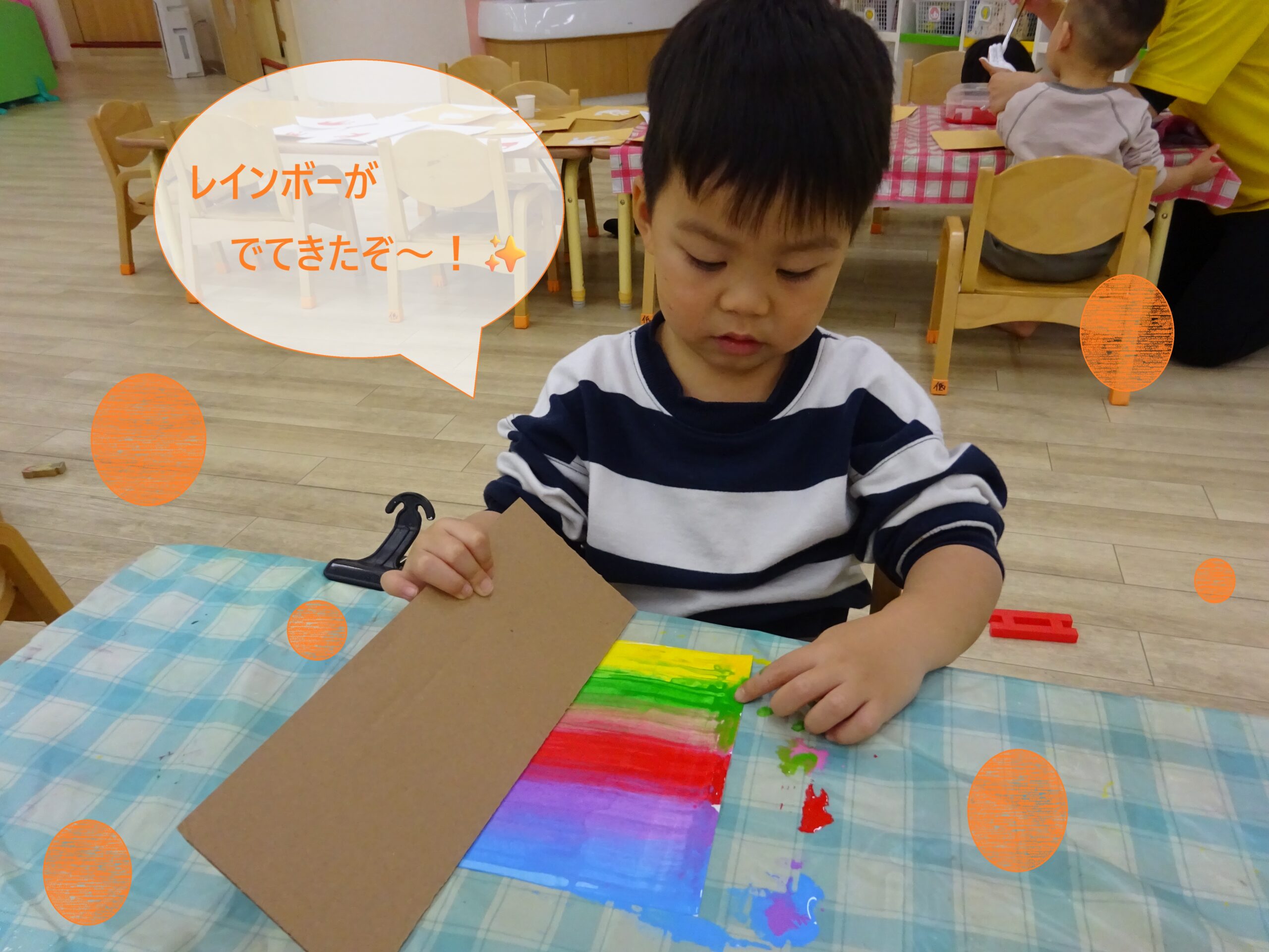 子どもたちも様々な技法を毎月楽しみながら取り組んでくれており、完成した作品が壁面に飾られると『これ○○がつくったんだよ!!』『みてみて~!!』と自慢げに紹介してくれる姿も見られています😊