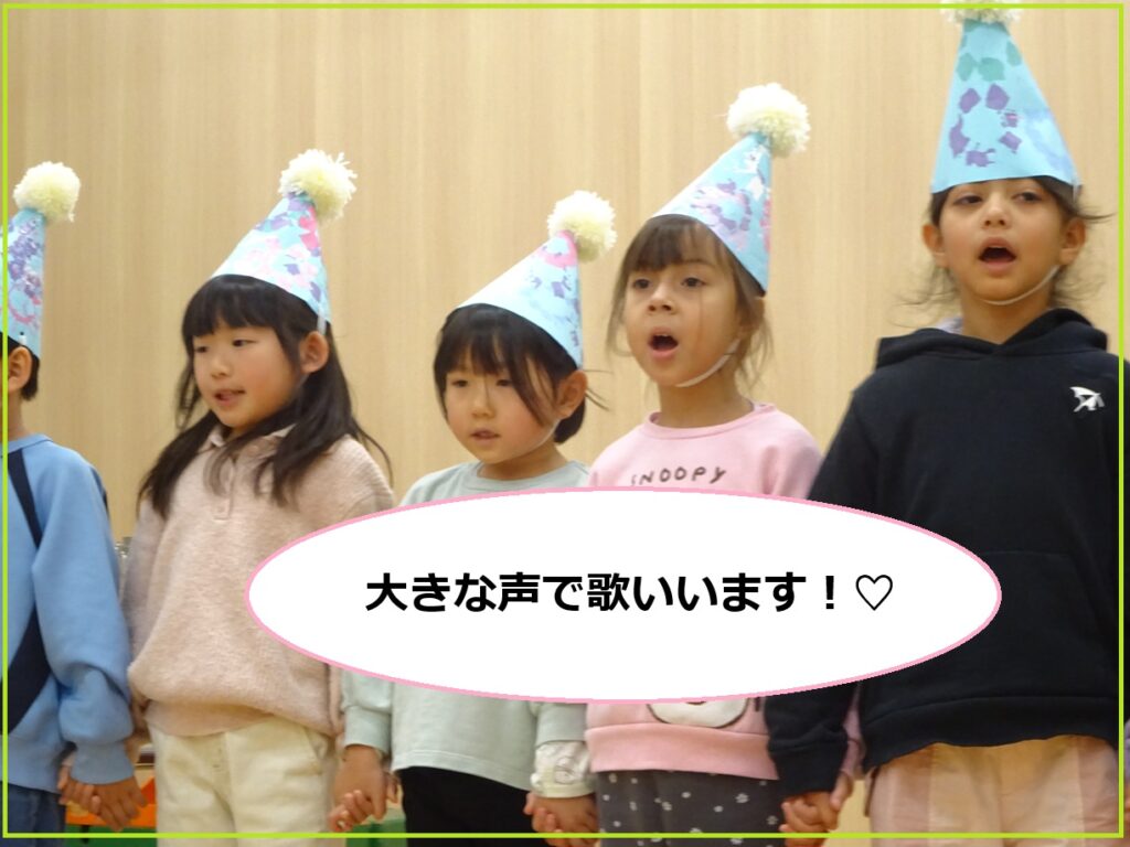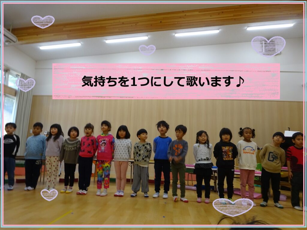 最初は歌声がバラバラでしたが、歌詞の意味に触れてみたり、お友だちと一緒に楽しみながら歌ったりする中で、少しずつ声も気持ちも1つになっていきました✨
