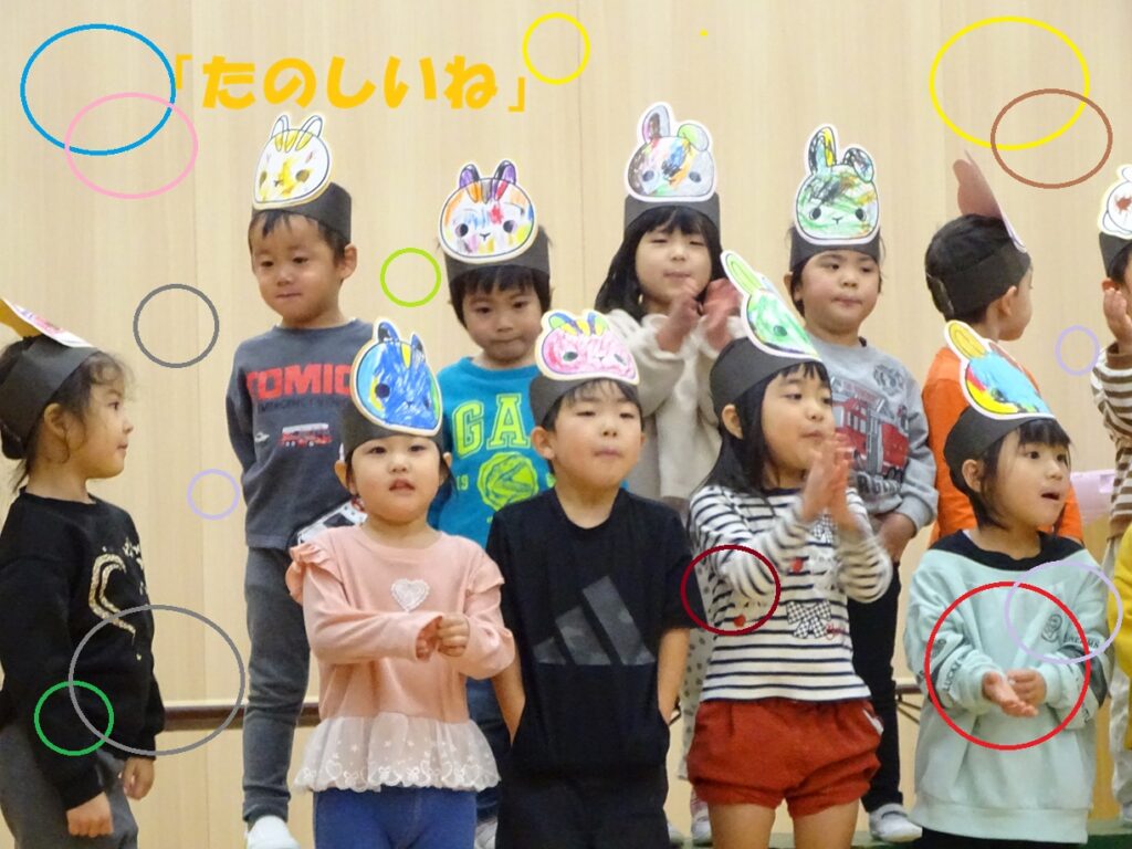「いぬのおまわりさん」は、初めは恥ずかしそうにする姿も見られましたが、何度も歌ううちに少しずつ慣れていき、「にゃんにゃんにゃにゃ~♪」と可愛らしく歌えるようになりました!