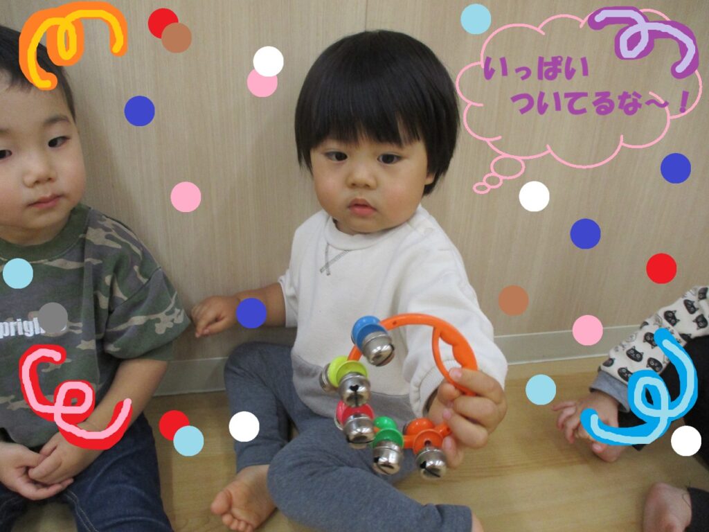「いぬのおまわりさん」ではタンバリンと鈴を使って演奏しました♪