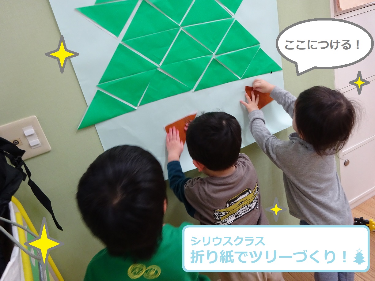 シリウスクラスは折り紙を使ったツリーづくりに挑戦しました。