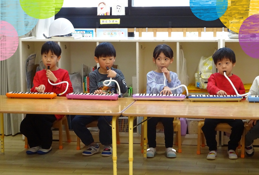インフルエンザが流行し、全員そろって練習できる日が少なかったのですが、登園できた日には「今日はみんなで練習できるね!」と嬉しそうに気持ちを合わせて活動していました。