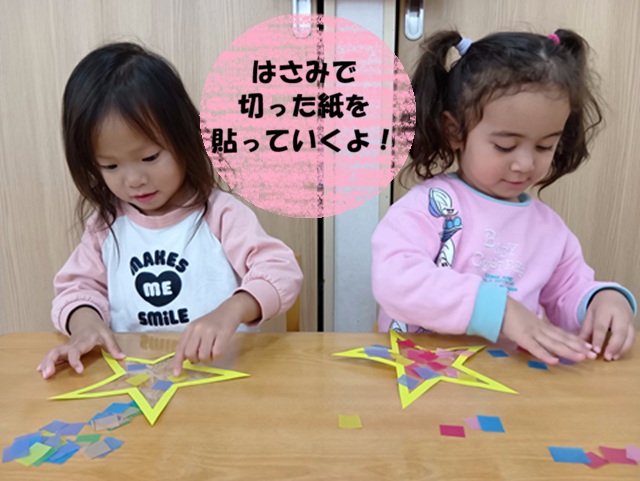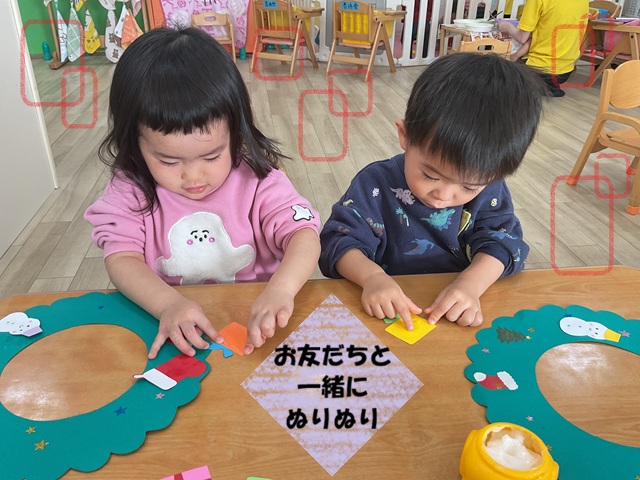 “のり”の感触に驚くことなく、楽しそうに塗る姿が見られました☺️