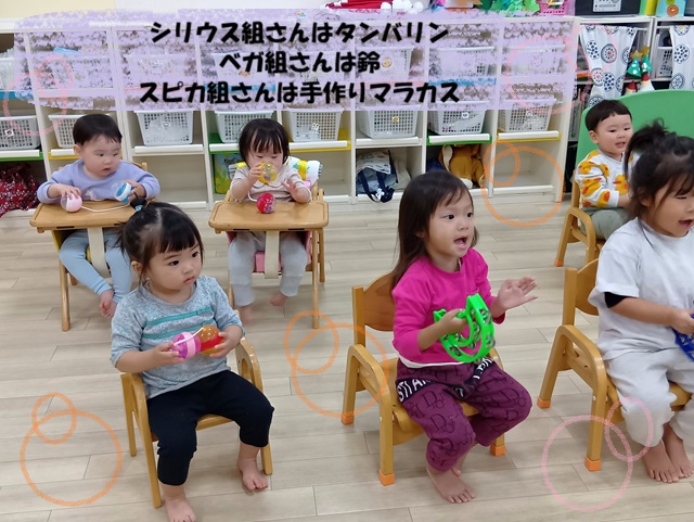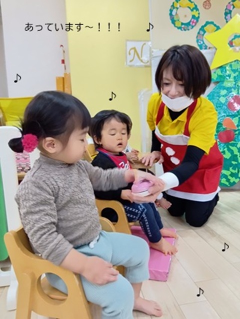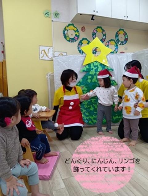 クリスマス会では「クリスマスのうたがきこえてくるよ」の曲に合わせて歌ったり踊ったり🎵