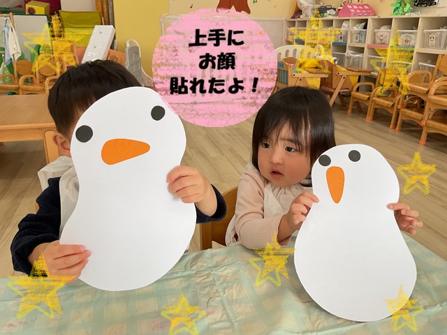 English timeでのアクティビティでは、雪だるまのお顔を作っていきます⛄