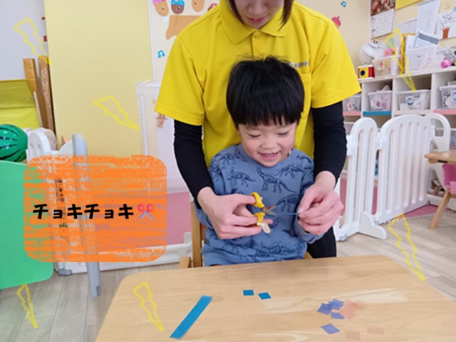 段々慣れてきて、今では先生と一緒ではありますが、上手に切る様子が見られます!