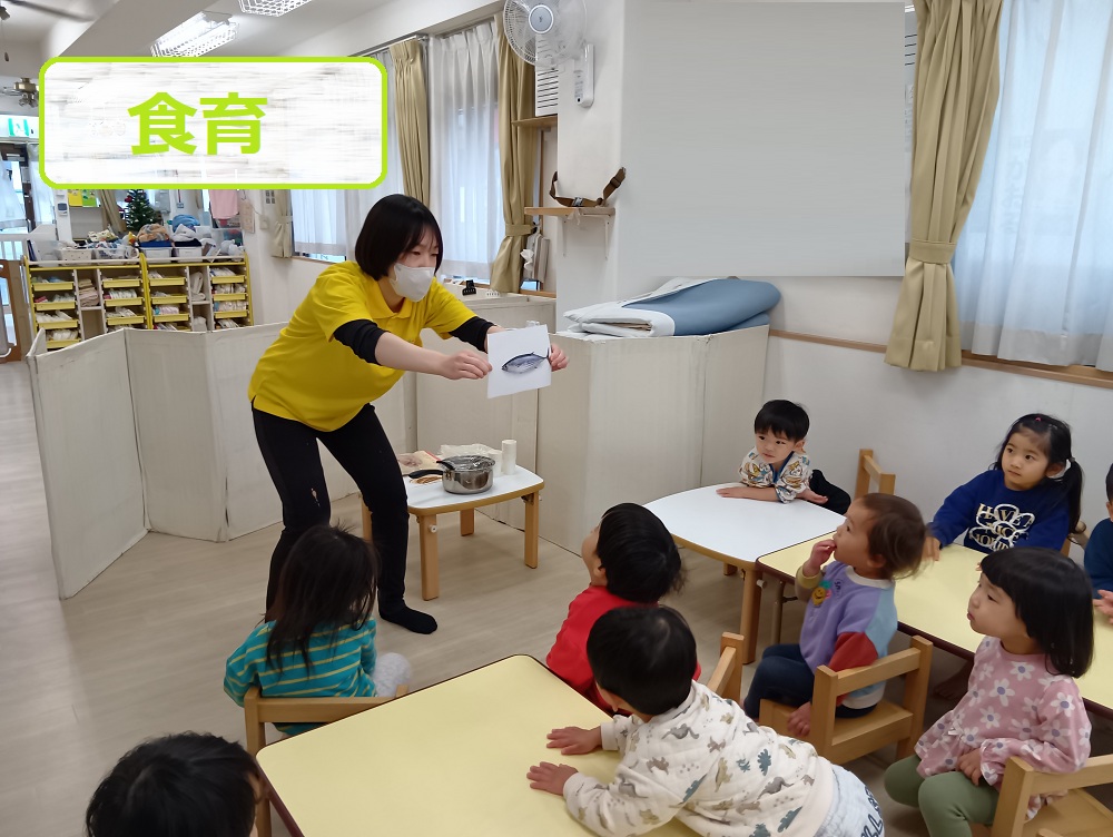 食事をいつも味わって食べている子どもたちへピッタリの食育を調理の先生が考えてくれました。