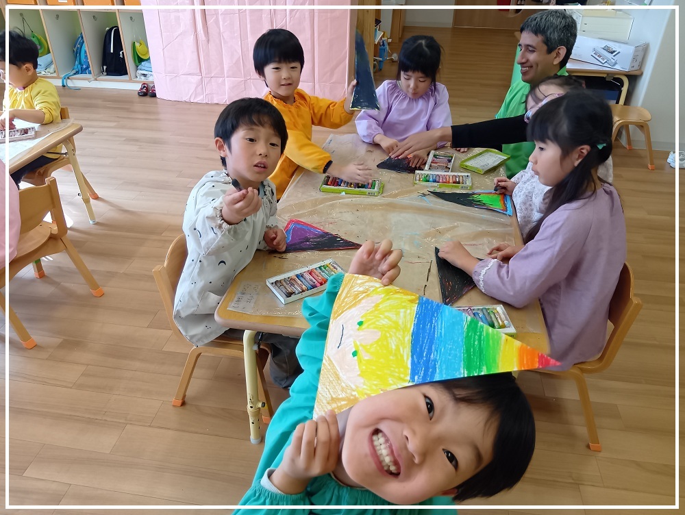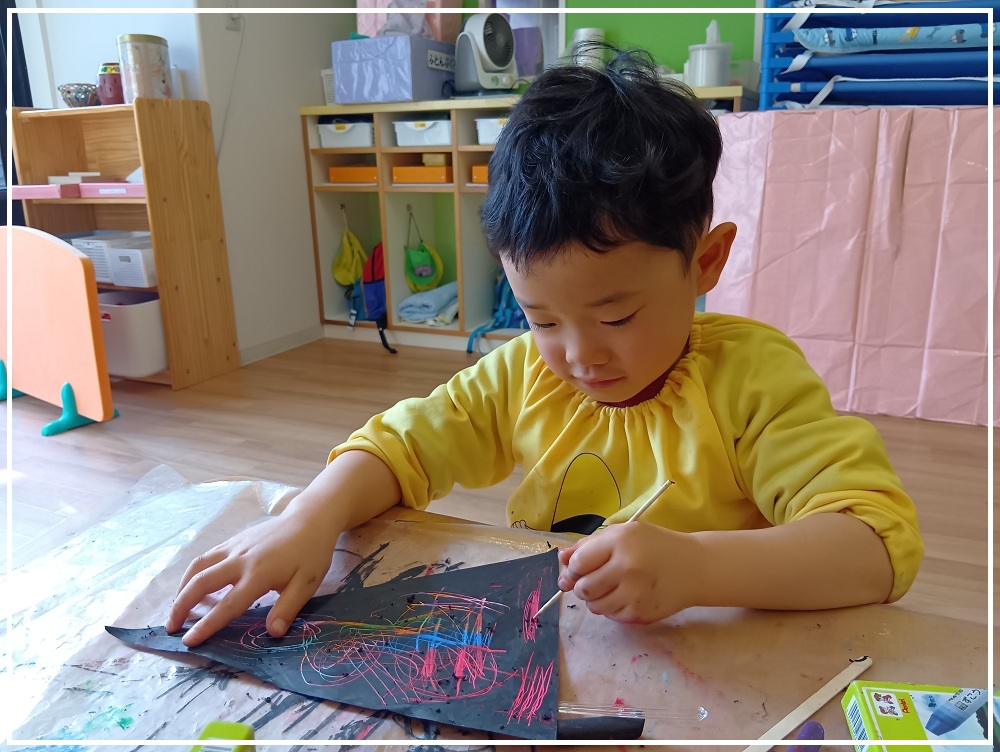 「ここに貼りたい」「きれいな色だね」と、先生や友だちとやりとりをしながら、作ることそのものを楽しむ姿がたくさん見られました✨