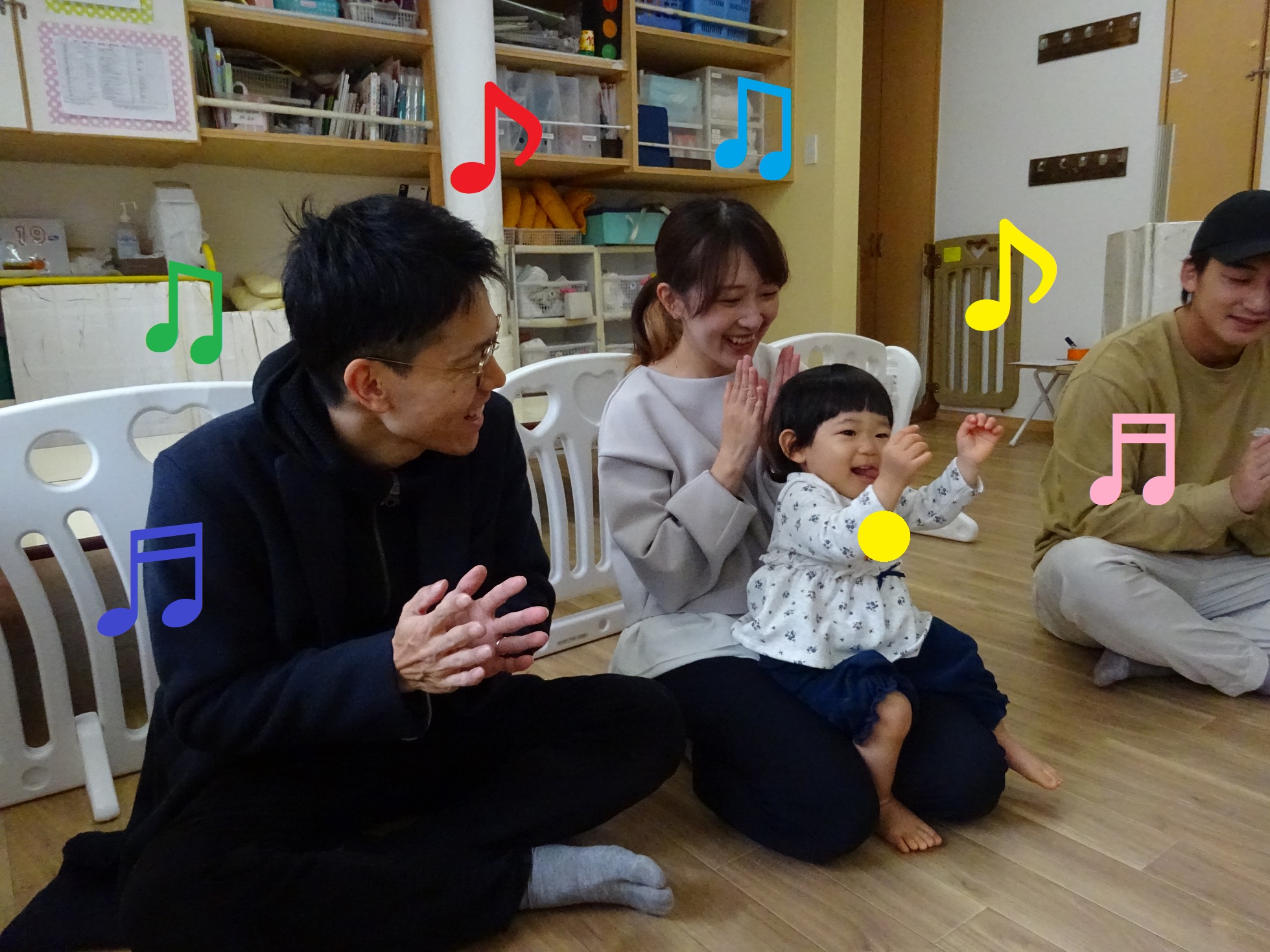 まずはじめにクリスマスのカードを見てからクリスマスソングが聴こえてくると興味津々で聴いたり体を横に揺らしたりしていました♪