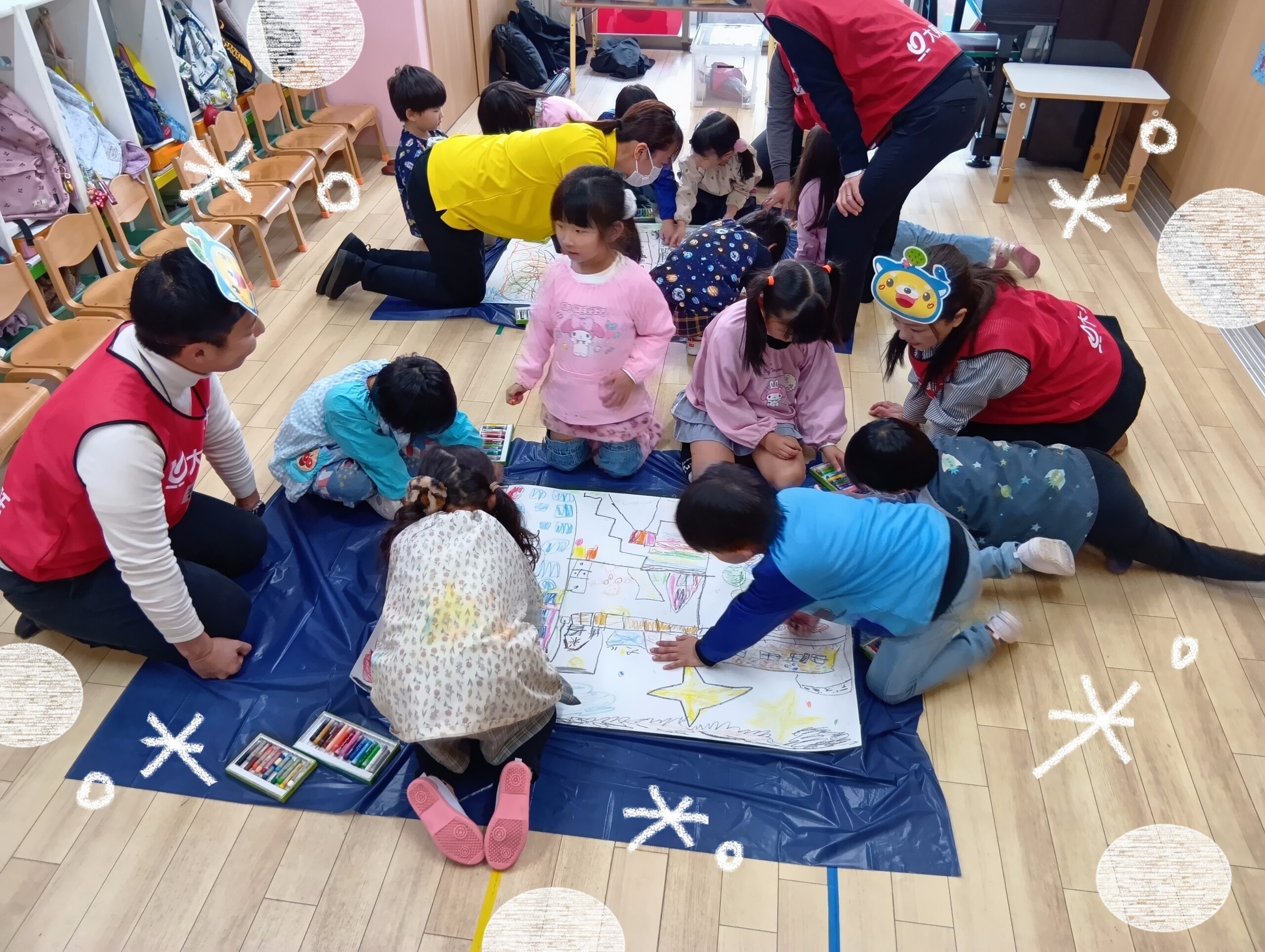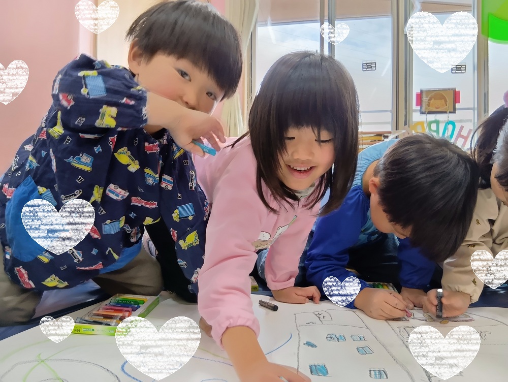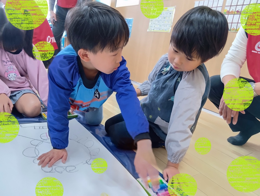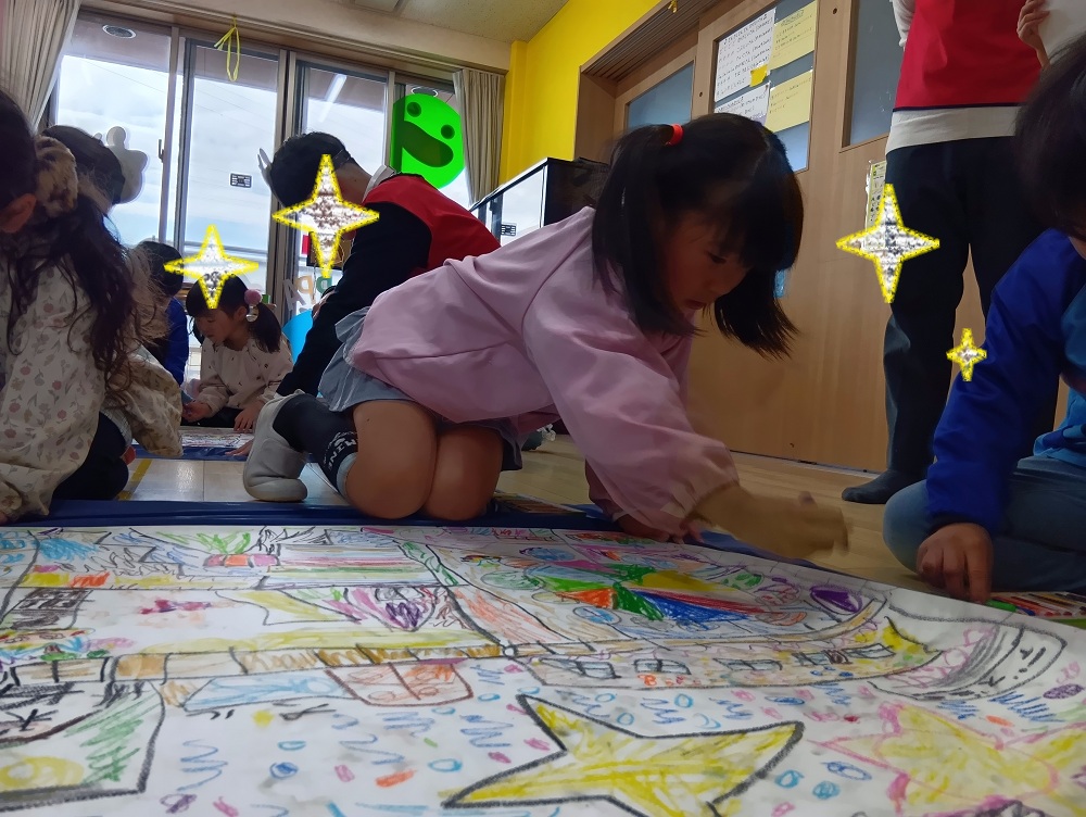 子どもたちの想像力が詰まった模造紙は、白い場所がなくなるほどにぎやかに!🌈