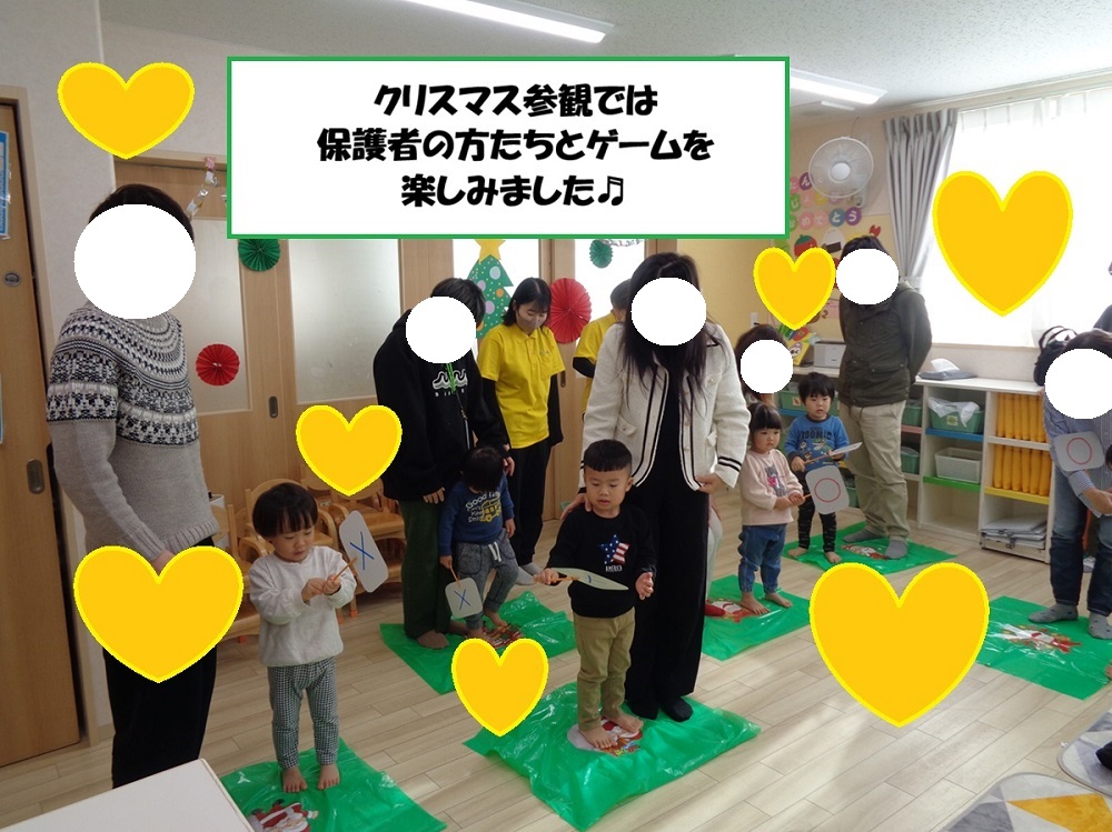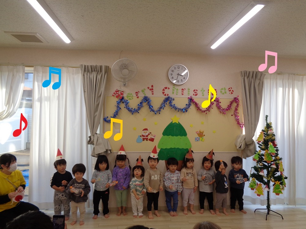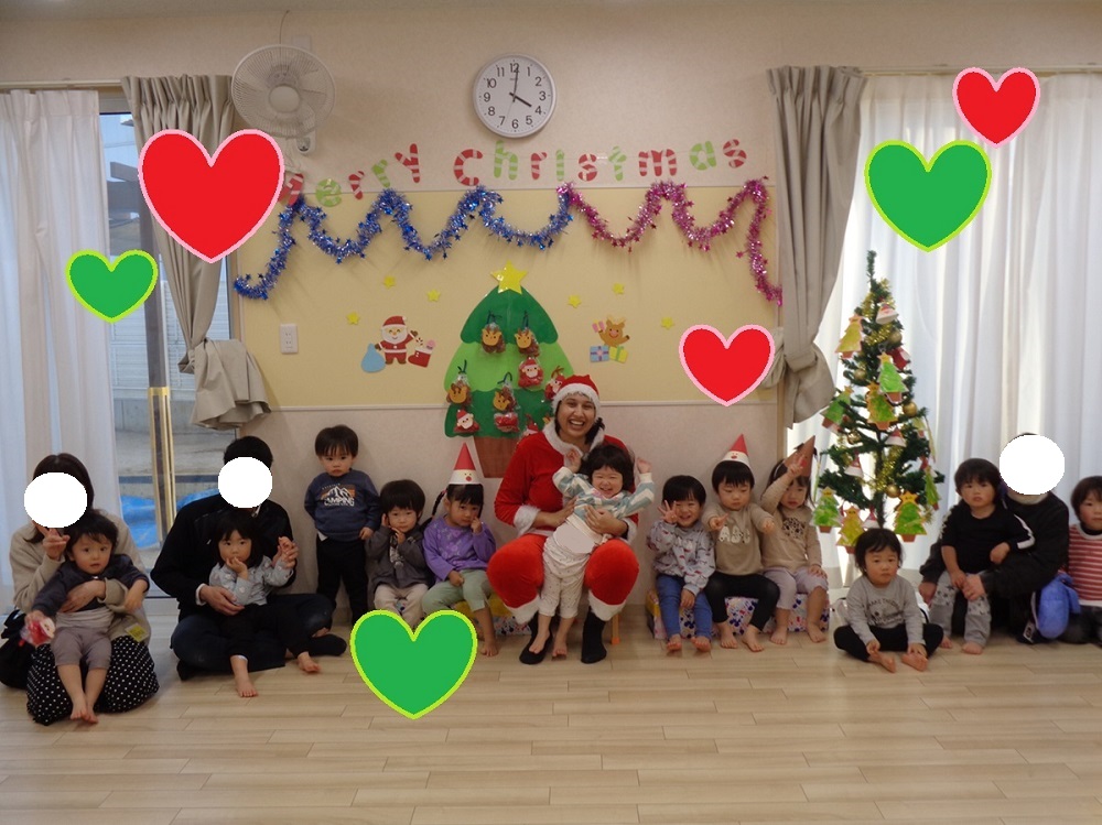 まずはクリスマスのオーナメント作りに挑戦し、クリスマス参観日では、親子でマラカスを作って「あわてんぼうのサンタクロース」の合奏を楽しみました。