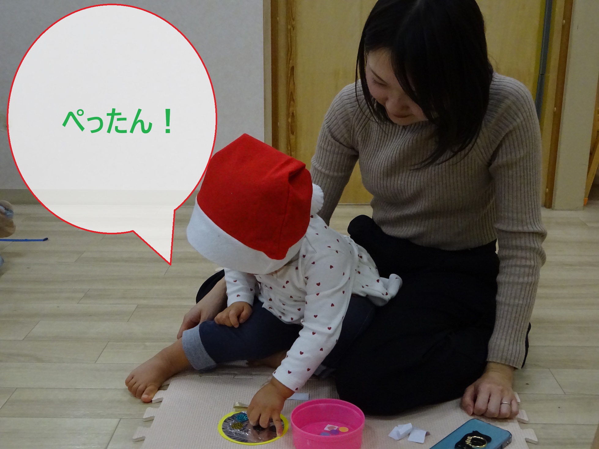 サンタの帽子を気に入った子は、被りながら参加しました!