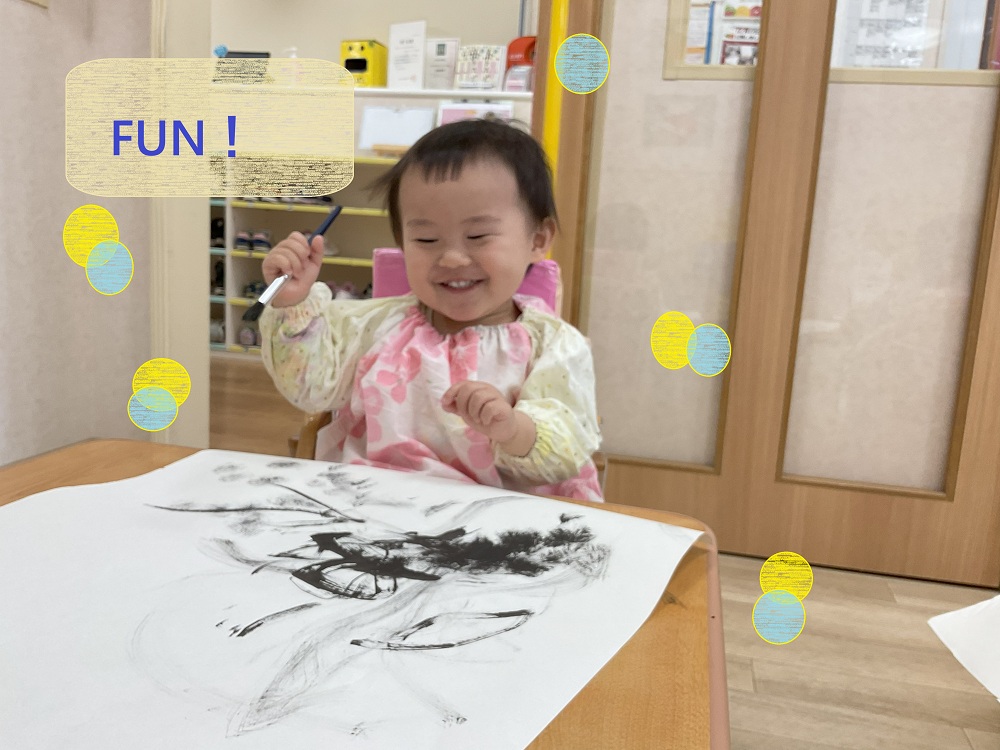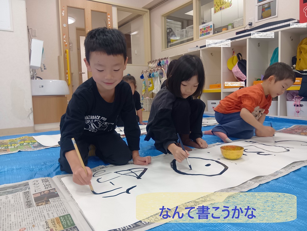 「墨汁って匂いがするんだね」「半紙は、こっちがツルツルしているよ」と発見をしながら取り組んでいました☺️