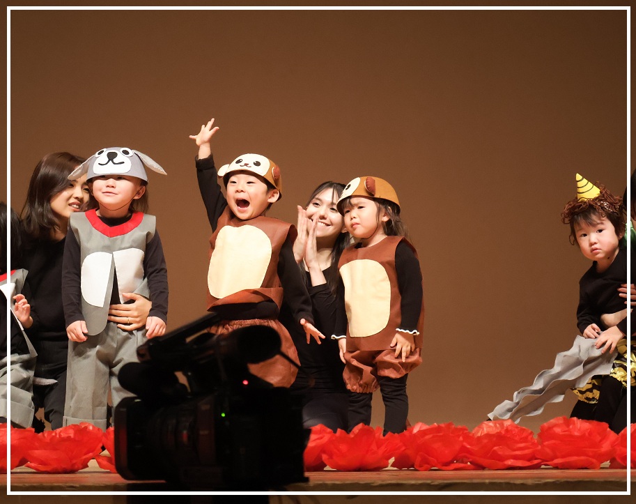 この特別なイベントでは、日常の保育プログラムである『知育time』『English time』『音楽遊び』を通して培ってきた力を、保護者様の前で発表します。