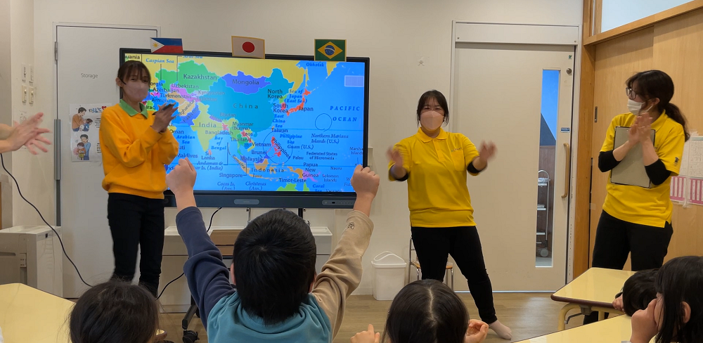 更に、それぞれの先生たちから、その国ならではのお話を聞いたり、写真や動画を見たり、子どもたちは終始目をキラキラさせて取り組んでいました✨