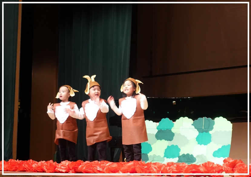 この特別なイベントでは、日常の保育プログラムである『知育time』『English time』『音楽遊び』を通して培ってきた力を、保護者様の前で発表します。