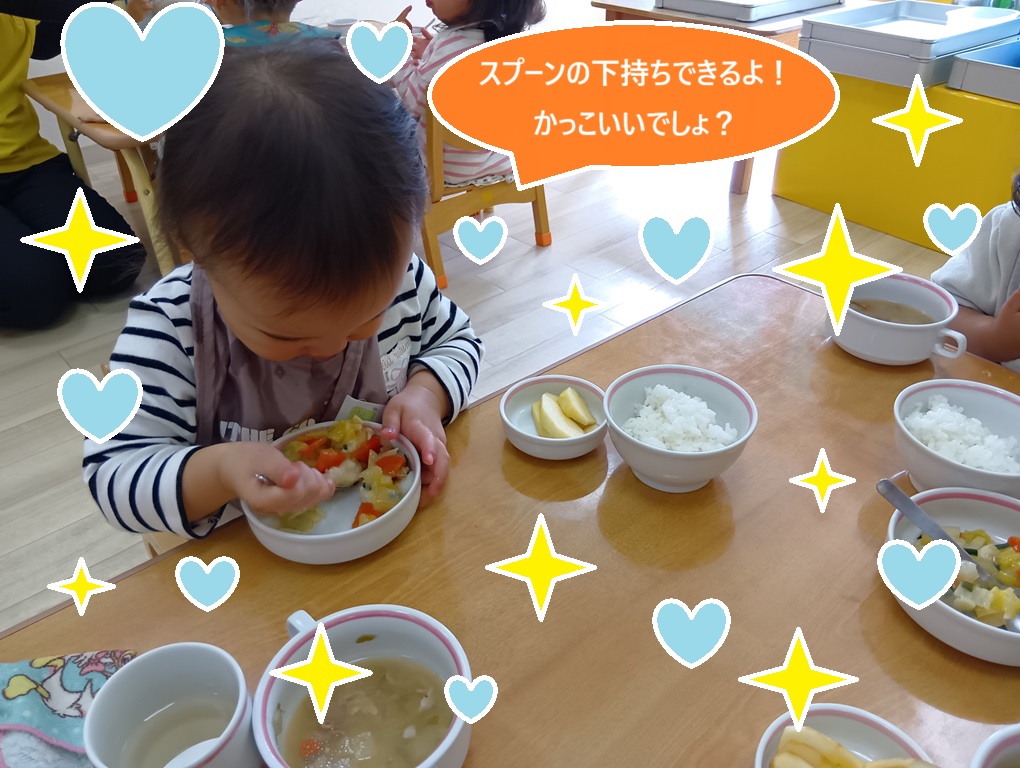 保育園での集団生活にも慣れ、ベガ組やシリウス組のお兄さんやお姉さんの姿を見ながら上手に真似をするスピカ組さん。