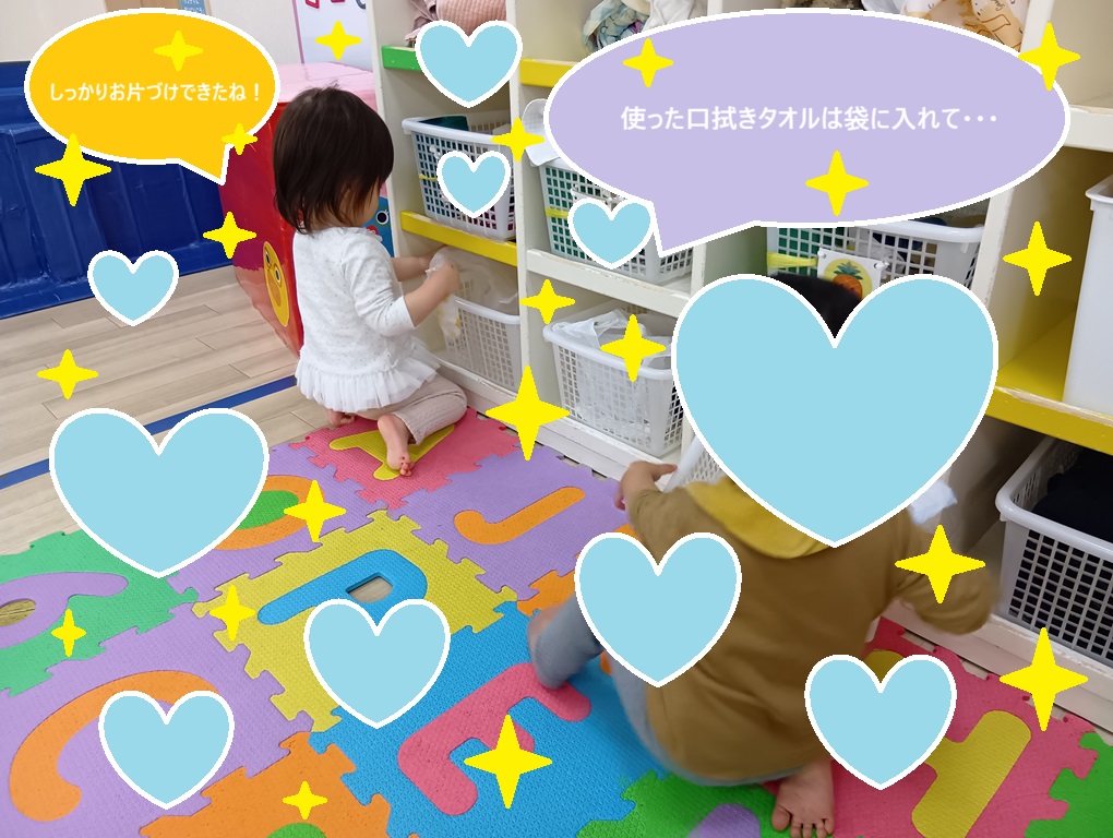 野村園の子どもたちは日々の知育timeや遊びを通して、身の回りのことに興味を持ち、様々なことが少しずつ自分でできるようになってきています。