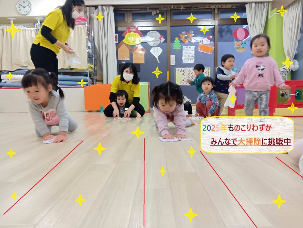 お部屋の端から端まで、よ~いドン!で雑巾がけ。