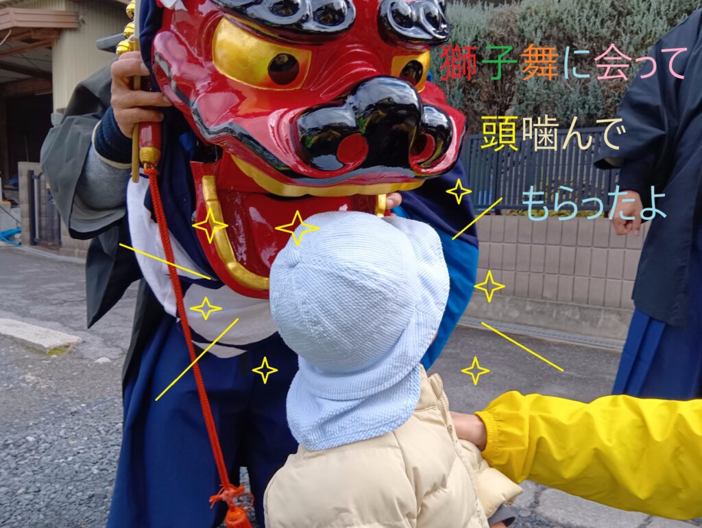 また、今年はなんと、お散歩に出た際に獅子舞に出会いました。