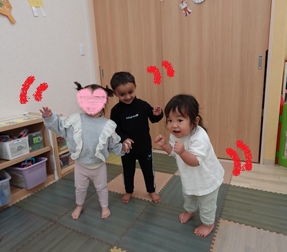 シリウス組(2歳児)さんはそれぞれ自分の好きな体操があるので、毎朝リクエストが飛び交っています。