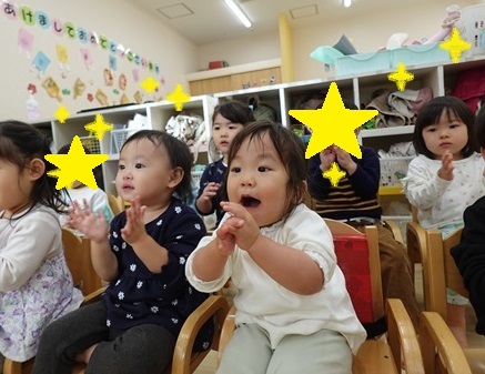 こちらはEnglish timeの時のスピカ組(0歳児)さんの姿です。