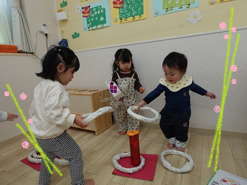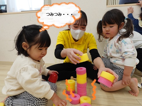 負けじと取り組むのはスピカ組(0歳児)さん。