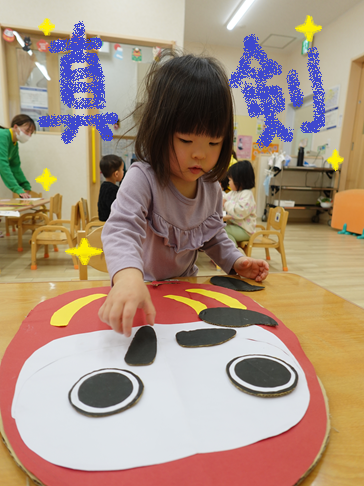 シリウス組(2歳児)さんは黙々と福笑いに挑戦。