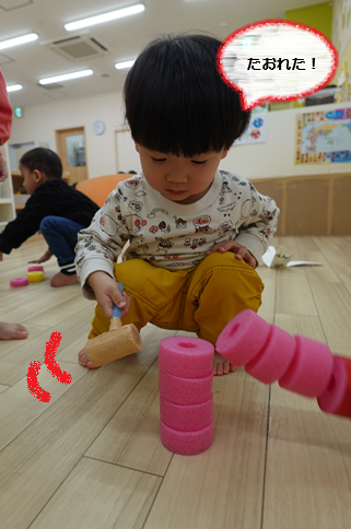 倒すのも楽しいけれど、高く積み上げることがとても上手になってきました!